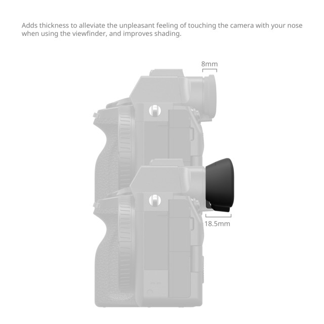 SmallRig Camera Viewfinder Eyecup for Selected Sony Alpha 1 / Alpha 7 / Alpha 9 Series Cameras 5255 is designed to improve the viewing experience during EVF use. By replacing the camera’s original eyecup, it increases depth and significantly reduces discomfort from nose contact with the camera—especially beneficial for users who don’t wear glasses. Featuring a soft silicone cushion at the eye contact area, this eyecup provides a comfortable, snug fit while effectively blocking stray light for superior visibility.