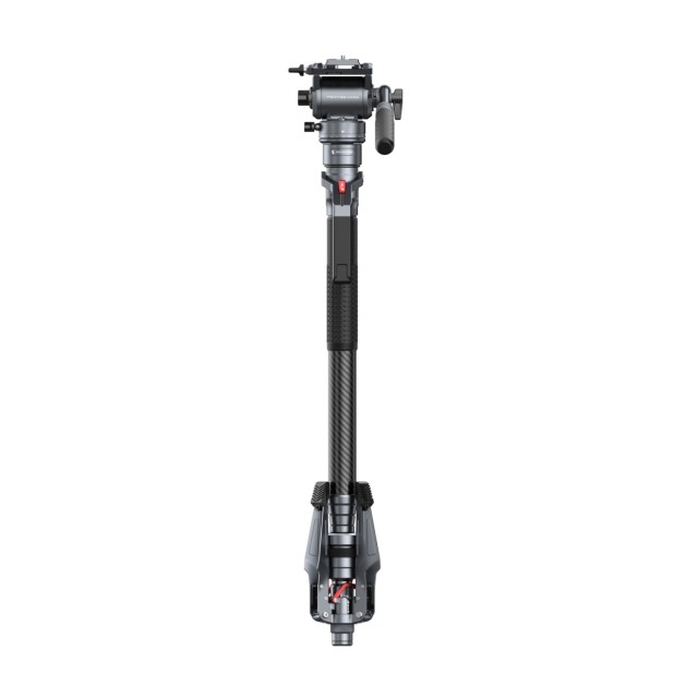 The monopod includes a compact fluid head with 3kg / 6.61 lb of balanced rebound force and supports loads up to 5kg / 11.02 lb, ideal for small to medium cameras. The head is compatible with DJI RS series quick-release plates and standard Manfrotto plates (501PL), enabling quick transitions between gimbals and tripods. A built-in bubble level assists in achieving horizontal alignment across various shooting scenarios.