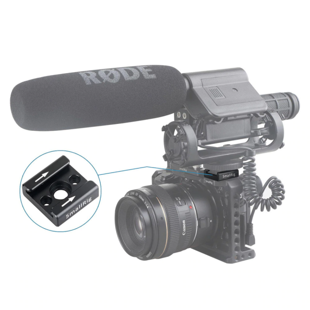 SmallRig Cold Shoe 1241 directly mounts onto any camera accessories with 1/4" and M2.5 threads such as cage, cold shoe block and so on. This creates a platform to mount on-camera lights, shoe handles, microphones and more. There comes with two secure bending bevels on the one end to prevent accessory accidental removal. We specially offer two white arrows on the surface to show the mounting ways for your convenience.