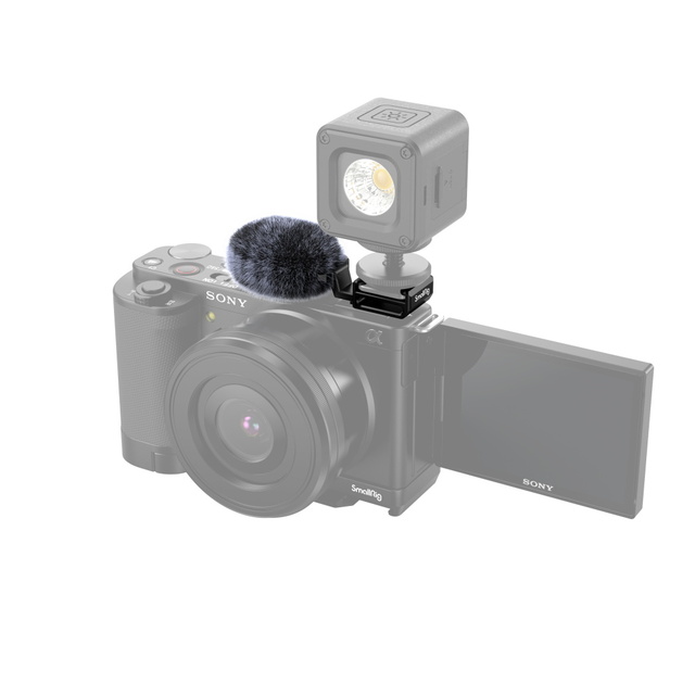 SmallRig Cold Shoe Adapter with Windshield for Sony ZV-E10 and ZV-1 3526 allows the camera to be fitted with both a windshield and a LED light. It solves the problem of the hot shoe is occupied and the accessories cannot be installed after the windshield is installed on the camera. The cold shoe adapter slides into the hot shoe on the camera and features a scratch-resistant cushion on the bottom, which locks the camera securely. High-quality nylon cold shoe comes with more strength and toughness. The kit comes with a dedicated windshield, with soft faux fur and thickened inner design to effectively reduce noise in outdoor shooting. The cold shoe is also compatible with the original windshield. Optional White Windshield 3530 is separately available. The cold shoe adapter is compact, lightweight, and easy to carry around, providing the simplest vlog solution for ZV-E10 and ZV-1 creators.