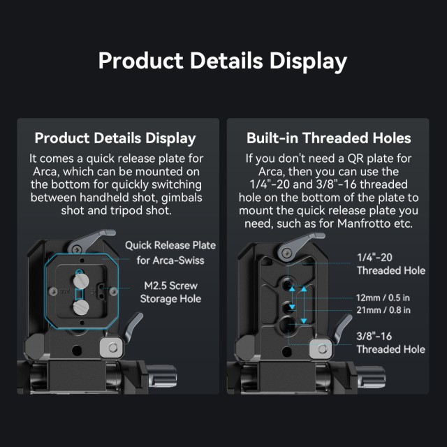 4. Arca-Swiss quick release plate for quick switch between handheld shot and tripod shot