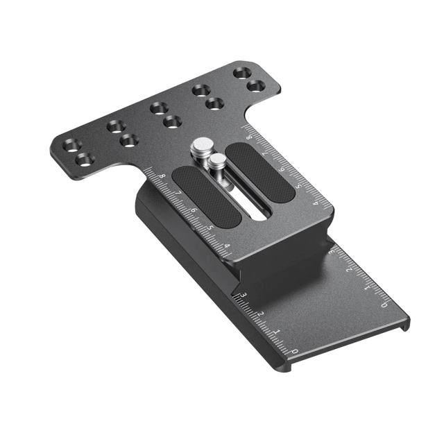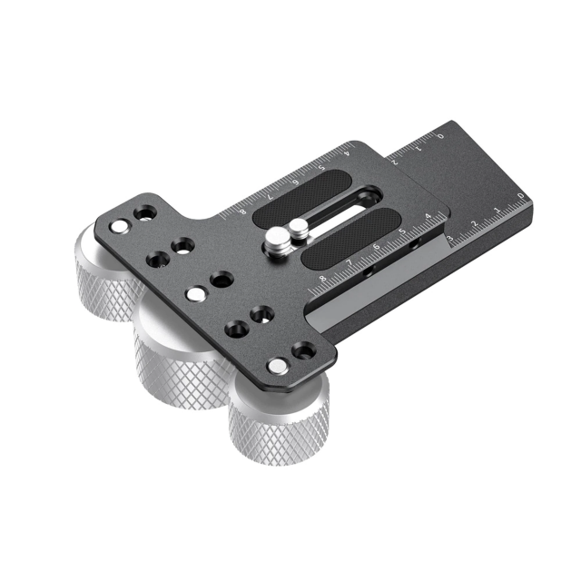 SmallRig Counterweight Mounting Plate for Zhiyun CRANE 3 LAB Handheld Stabilizer BSS2402 is designed to replace the original camera plate that comes with Crane 3 and allows you to balance front-heavy camera setup by adding counterweights at the rear. The plate secures to the bottom of camera via a 1/4 screw or both 1/4 "and 3/8 "screw for Camcorders. It features rows of 1/4"-20 threaded holes to support counterweights. OptionalCounterweight 2459 (50g), 2284 (100g) and 2285 (200g) are sold separately. The top of the plate features rubber pads to protect the camera from scratching. Additionally, it features two m5 threaded holes on the side to fit the original sliding base of the gimbal and features millimeter scale for easily marking camera position.