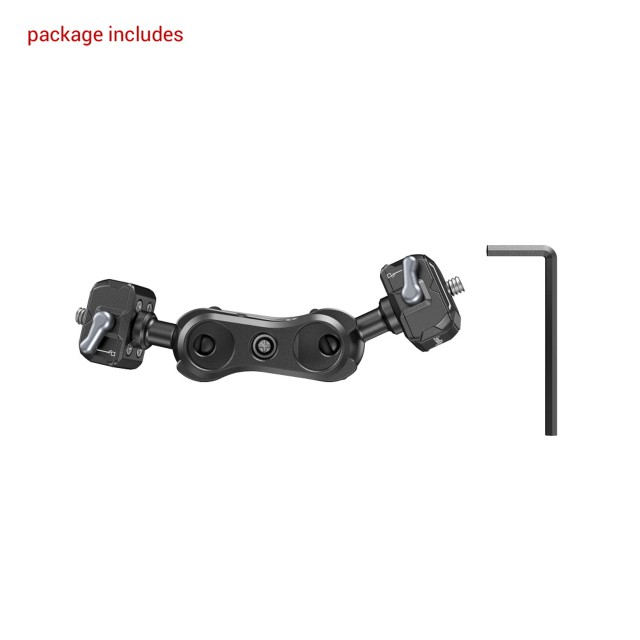 SmallRig Magic Arm with Quick Release Ball Head 3515 is a quick release mount, which features 1/4"-20 threaded screw slots on both ends, with cushions to enhance friction and prevent scratches. Its quick release ball head is compatible with devices with 1/4"-20 threads, such as cameras, monitors, cages, mounting plates etc. and the quick release plate can buckle vertically and stable into the baseplate, causing no deflection. The magic arm is easy to lock and unlock. The ball head, together with a clamp, enables universal adjustment of the magic arm. It is removable, replaceable. It’s compatible with accessories of 2132, 2133, 2134, 2114, 2108, BUM2383, 2211,you can choose to get the above accessories according to your needs. This magic arm, which holds up to 5kg, locks devices securely during shooting.