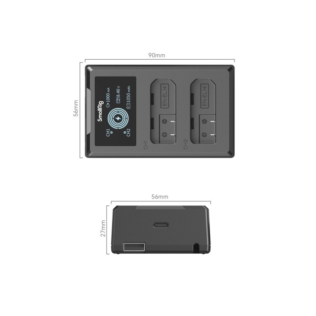 SmallRig EN-EL14 Camera Battery Charger 4082 is made of high-quality ABS+PC fireproof material. The surface is frosted, high temperature resistant, tactile and durable. The built-in battery compartment is the same size as the original camera battery closely fits the camera battery compartment, and is installed without jamming. The charger adopts a double-slot design, which can charge two batteries at the same time.