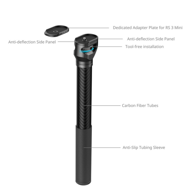 The SmallRig Extension Arm for DJI Stabilizers is specifically designed for RS 4, RS 3, and RS 2 models, offering a secure and lightweight solution for mounting accessories. Made from carbon fiber, it ensures durability without adding extra weight. The anti-slip grip with padding enhances stability, making it easy to achieve precise shots from different angles.