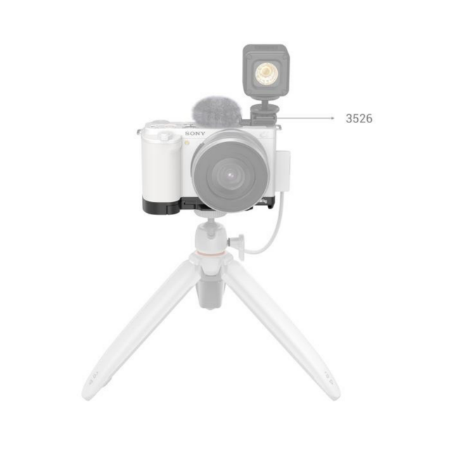 SmallRig Extension Grip for Sony ZV-E10 (Black) 3523 is designed to enhance grip experience and provide accessory mounting points. The baseplate secures to the camera with a 1/4''-20 D-ring screw without tools. The bottom features an integrated Arca-type quick release plate that allows for mounting quickly onto a tripod. The bottom features multiple 1/4''-20 threaded holes which are compatible with DJI RS 2 & RSC 2 Quick Release Plate (Upper). The right side comes with a 1/4"-20 thread for mounting a tripod for vertical shooting and still maintains access to the flip screen and cable ports. Features a cold shoe on the bottom enables to mount a microphone or light, the distance from the Arca plate to the cold shoe is well tested so that you can mount an Arca tripod and wireless go at the same time. The battery door features an open-and-close lever and a pivoting structure for more durability and stability, which ensures a better grip experience without affecting battery replacement and overall fitness.