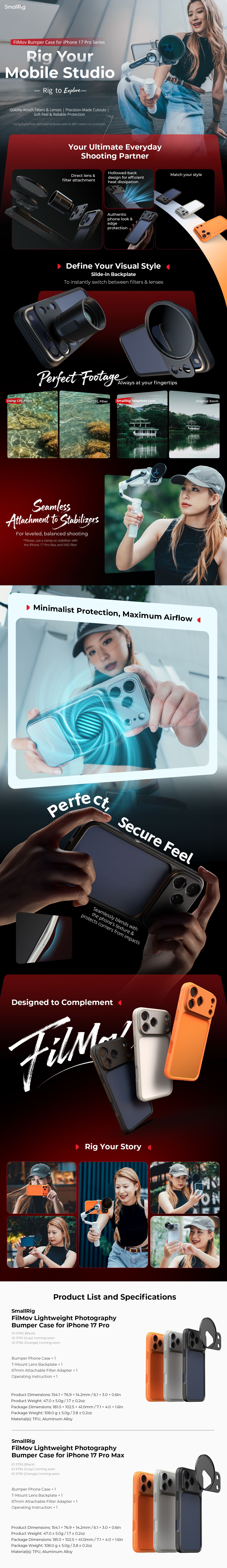 SmallRig FilMov Lightweight Photography Bumper Case for iPhone 17 Pro (Black) 5790 is an ingenious phone case that seamlessly integrates with the optical ecosystem for visual creation. The phone case features a hollowed-out back panel design, and the bumper case offers good heat dissipation.