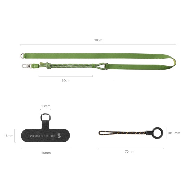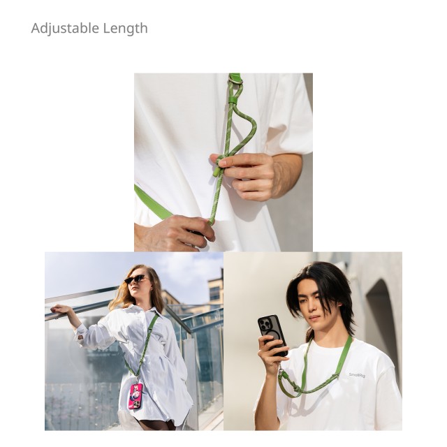 SmallRig FilMov Phone Shoulder Strap is a functional, stylish, and eco-friendly phone lanyard with adjustable length to match different styles. Crafted from genuine leather and nylon rope, it is durable yet lightweight. The minimalist Peruvian knot design allows for length adjustment, suitable for wearing around the neck or across the body. It features a multi-purpose hanging point and a bottom metal hook for attaching accessories like AirPods cases, keys, or charms.