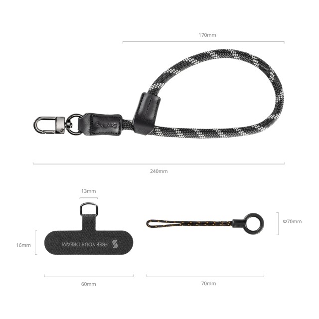 SmallRig FilMov Phone Wrist Strap—combining functionality, style, and eco-friendliness—features adjustable length and a sturdy metal hook for hanging phones or accessories like AirPods, keys, and charms. Its tool-free installation offers effortless convenience for everyday use.
