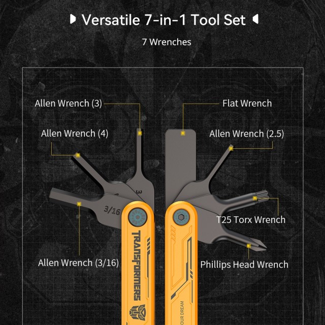 · 7-In-1 Multi-Functional Kit: Includes 4 Allen wrenches (2.5mm, 3mm, 4mm, 3/16"), 1 flat-head screwdriver, 1 Phillips screwdriver, and 1 Torx T25 driver