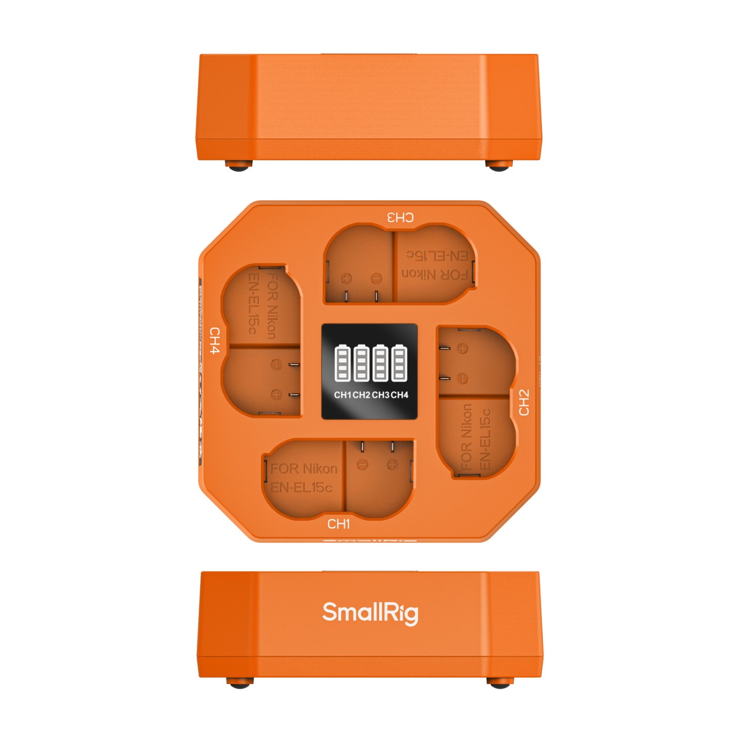 SmallRig Four-Channel Camera Battery Charger for EN-EL15c 5747 is a high-efficiency, high-power charger designed for EN-EL15c batteries. With a 45W max input and full protocol compatibility (including 5V/1A adapters), it intelligently queues charging based on the adapter’s power.