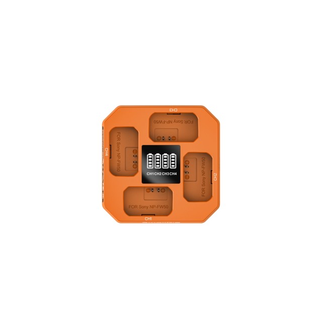 The four dedicated channels allow for simultaneous charging of four NP-FW50 batteries, delivering efficient fast charging to meet demanding shooting schedules.