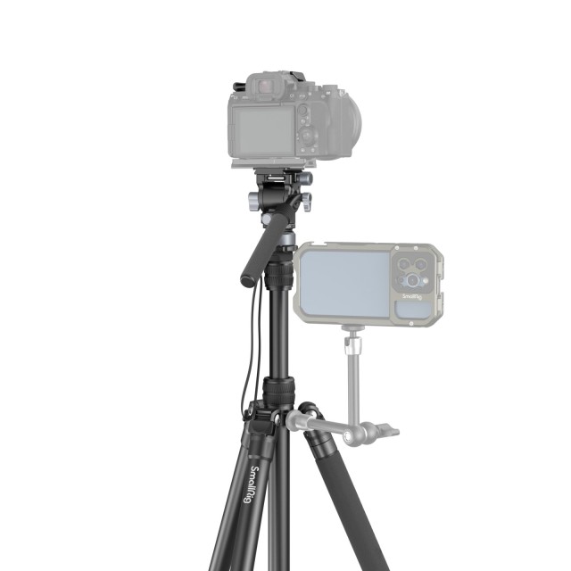 SmallRig CT190 Video Tripod Kit 4319 is delicately designed for videoing, live streaming, vlogging, etc., particularly in outdoor scenarios. It features reverse-folding Aluminum alloy legs to be folded down to 45cm and a center column to increase stability. The 4-section legs with knob locks allow you to adjust the working height to up to 184cm in seconds, and the detachable center column can be reversed for low-angle shots. By disassembling one of the legs and attaching it to the head, you can turn the tripod into a monopod. There is a 3-stop (23° / 55° / 79°) knob for quick angle adjustment to meet your needs. As for Video Head 4170 on the top, it comes with an integrated bowl base that enables 10 / -10° adjustment for quick leveling; a detachable telescopic handle, compatible either on the left or right side, for easier storage and more portability; and a built-in wrench for quick installation or removal of the camera. It also swivels 360° and tilts 90° / -55° to take steady shots from different angles. Besides, this tripod can support accessories like a magic arm via the two 1/4"-20 threaded holes. It weighs only 1.8kg and bears as much as 4kg, making it a good companion for shooting outdoors.