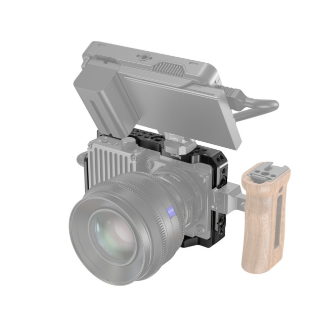 SmallRig Freefly Wave Cage 3532, designed to protect Freefly Wave and provide accessory mounting points, aims to facilitate professional video shooting and enhance creators’ experience. The cage secures the camera via 1/4"-20 threaded holes at the bottom and top and six M3 threaded holes around. Its multiple built-in 1/4"-20 threaded holes and ARRI 3/8" -16 locating holes supports Side Handle 2093, Monitor Mount 2903, etc.; its NATO rail on the left side allows quick attachment of Side Handle 2187 to improve shooting efficiency. The modular backplate comes with a number of 1/4"-20 threaded holes and ARRI 3/8" -16 locating holes for various battery plates, such as MD2801, 2987. It can be moved left and right to adjust the gravity of the equipment. There are rubber pads between the cage and camera to prevent scratches. Also, the cage maintains access to HDMI, power supply, buttons, without affecting the original functions of the camera.