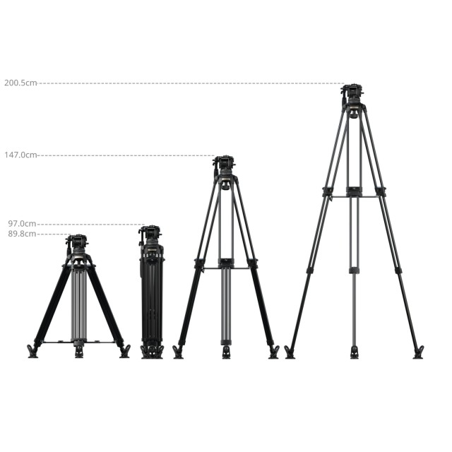 Constructed with aluminum alloy legs (Ø18mm) in a 3-section, 2-2-1 segment configuration and a standard 100mm bowl base, the tripod pairs with a fluid head featuring 7-step counterbalance and independent 4-level tilt / pan damping control. The counterbalance mechanism supports loads from 4kg to 10kg (8.8lb to 22lb), while the head offers a safe operational weight of 15kg (33.1lb) and a maximum load capacity of 17kg (37.5lb). The tripod’s working height ranges from 89.8cm to 200.5cm (35.4in to 78.9in), ensuring high-load stability and smooth motion shots while supporting high-angle shooting scenarios.
