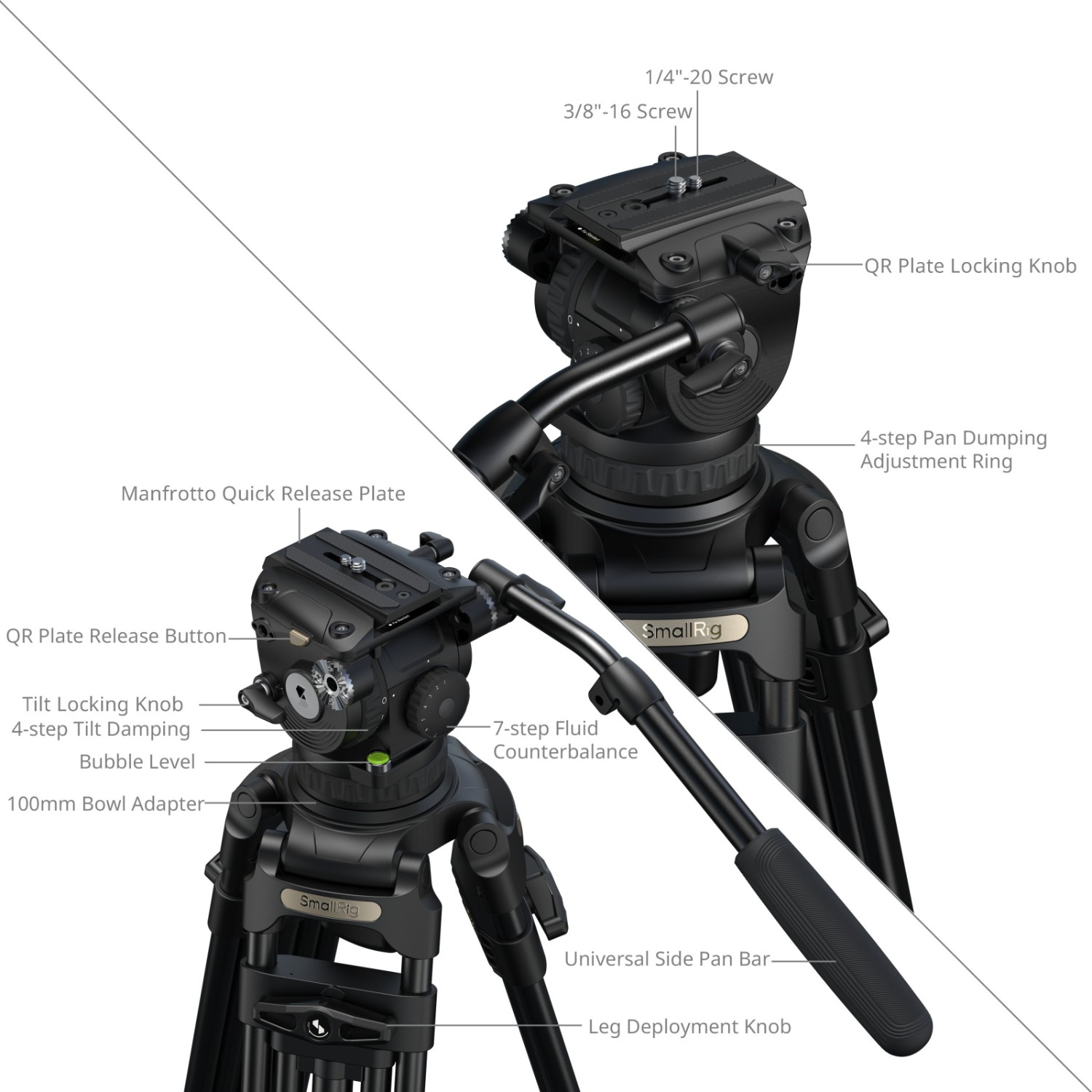 SmallRig FSD18 FreeSpeed Heavy-Duty Aluminum Alloy Tripod 5577 is engineered for professional videography, combining rapid deployment with exceptional stability under heavy loads. Its one-step leg deployment knob allows for quick height adjustments, streamlining your on-site workflow.