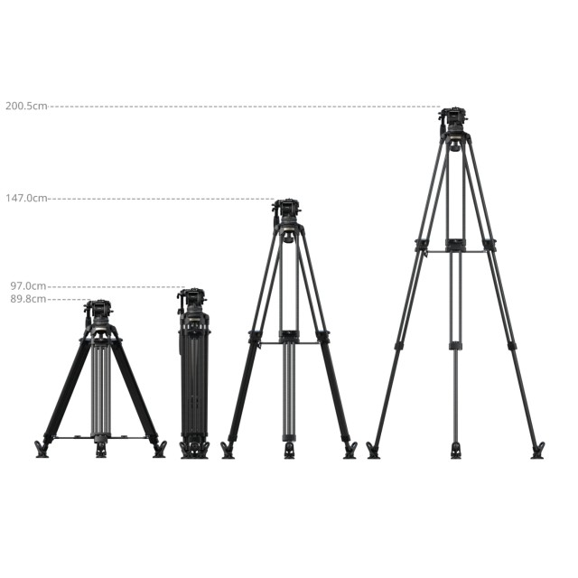 Constructed with carbon fiber legs (Ø18mm) in a 3-section, 2-2-1 segment configuration and a standard 100mm bowl base, the tripod pairs with a fluid head featuring 7-step counterbalance and independent 4-level tilt / pan damping control. The counterbalance mechanism supports loads from 4kg to 10kg (8.8lb to 22lb), while the head offers a safe operational weight of 15kg (33.1lb) and a maximum load capacity of 17kg (37.5lb). The tripod’s working height ranges from 89.8cm to 200.5cm (35.4in to 78.9in), ensuring high-load stability and smooth motion shots while supporting high-angle shooting scenarios.