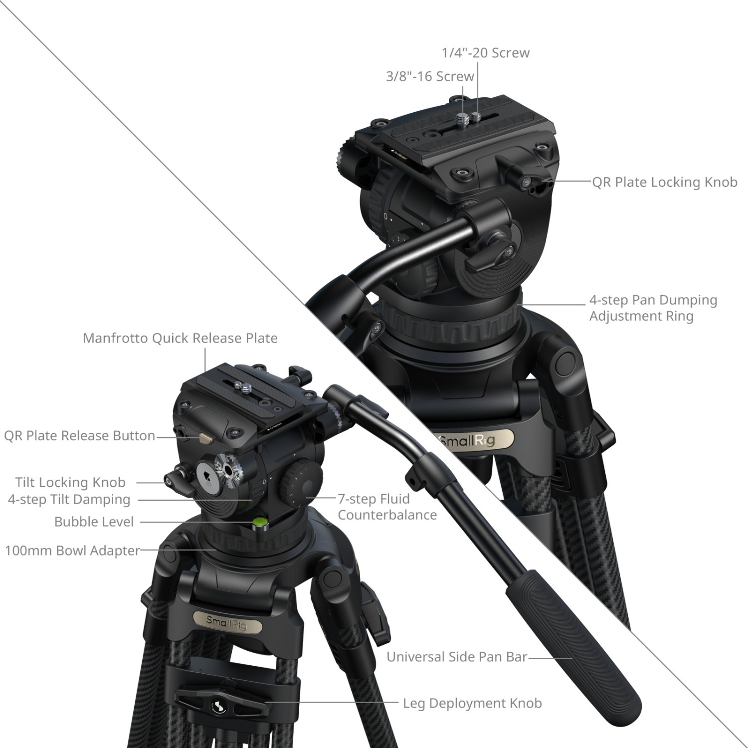 SmallRig FSD18 FreeSpeed Heavy-Duty Carbon Fiber Tripod 5578 is engineered for professional videography, combining rapid deployment with exceptional stability under heavy loads. Its one-step leg deployment knob allows for quick height adjustments, streamlining your on-site workflow.