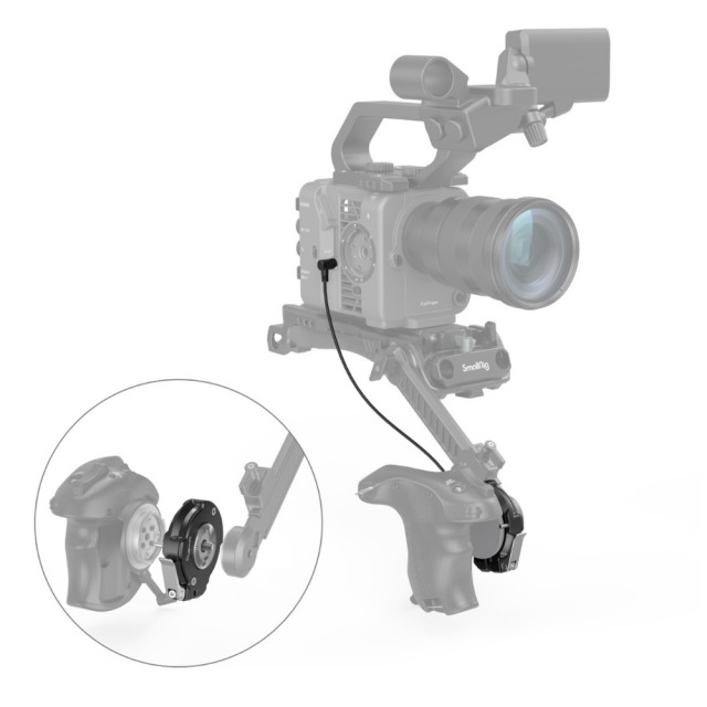 SmallRig Handgrip Rosette Adapter for SONY FX6 3403 allows repositioning the original SONY FX6 handle. It quickly locks the grip with the cam lever and does not obstruct its rotation. The built-in anti-drop design makes it safe and stable; a locking sign ensures correct installation. In addition, an attached M6 screw works with an optional Arri Rosette Adapter to mount the handle onto the stabilizer. When using shoulder rigs, you can use the adapter to reposition the handle via optional Extension Arm 1879. The package also includes LANC Extension Cable 3404, when connects the camera to the handle, enables the use of the trigger of the original handle.