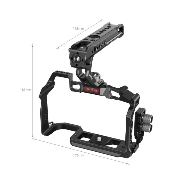 SmallRig Handheld Kit for Canon EOS R5/R6/R5 C 3830 is designed to facilitate low angle shot, protect camera and provide accessory mounts. The kit includes a dedicated full cage, a cable clamp and an ARRI top handle. The cage locks camera via one screw and two locating pins to prevent twist. It offers a wide range of mounting points such as 1/4''-20 threaded…