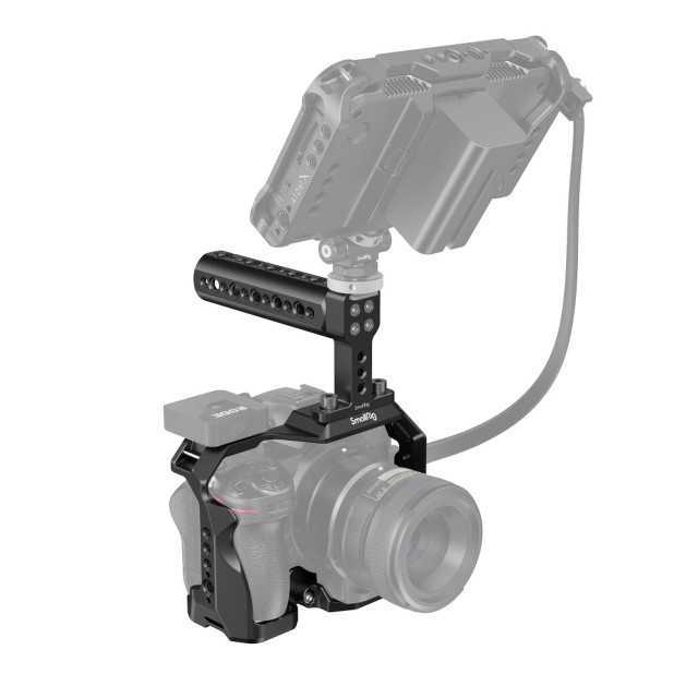 SmallRig Handheld Kit for Nikon Z 5/Z 6/Z 7/Z 6II/Z 7II 3721 is designed to facilitate low-angle shot, protect camera, and provide accessory mounts. The kit includes a full cage, a top handle and a FTZ lens adapter support. The form-fitting full cage offers a wide range of mounting points such as 1/4''-20 threaded holes, ARRI 3/8" -16 locating holes, cold shoes, NATO rail for magic arm, side handle, LED light and microphone, etc. FTZ lens adapter support reduces pressure on lens mount. The top handle attaches to the cage via two 1/4''-20 screws and provides a comfortable and stable low-angle shooting experience as well as such accessory mounts as 1/4''-20 threaded hole, ARRI 3/8"-16 locating holes, cold shoes that support monitor mount, magic arm and other accessories.