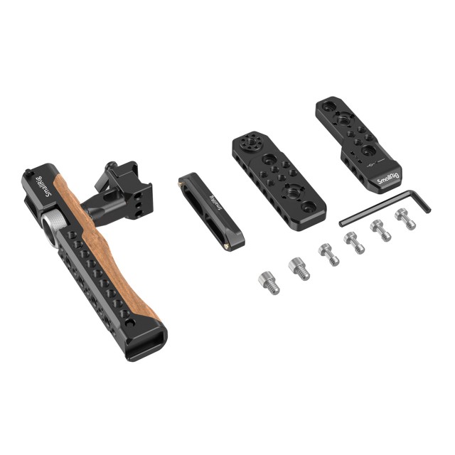 SmallRig Handheld Rig for Sony FX6 3224 is designed as the handheld solution for Sony FX6. It supports two ways to hold the camera, i.e. top handle solution that allows low-angle shot and two-handed solution that allows overhead shot. The handle is horizontally adjustable based on the center of gravity of the camera. It is made of anti-freeze wood and ergonomically designed for comfortable grip.