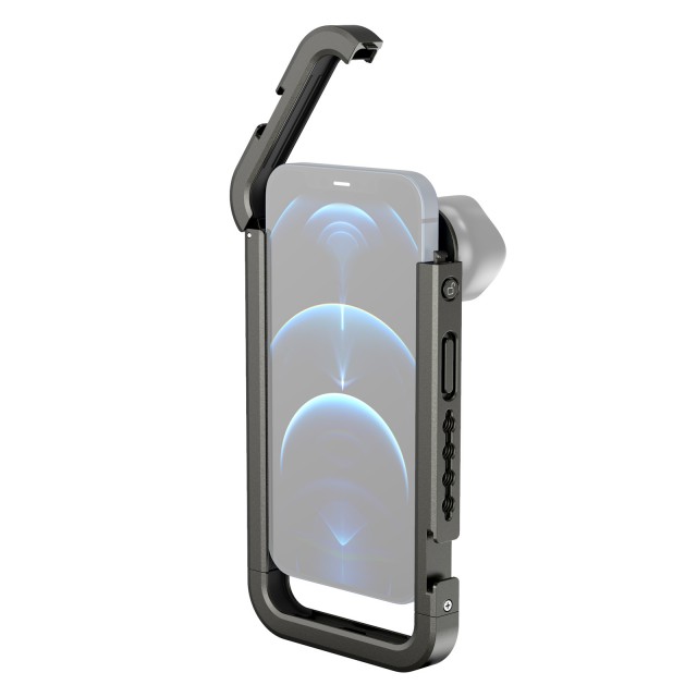 1. A handheld video rig specially designed for iPhone 12 Pro for mobile filmmaking, vlogging, commercials, etc.