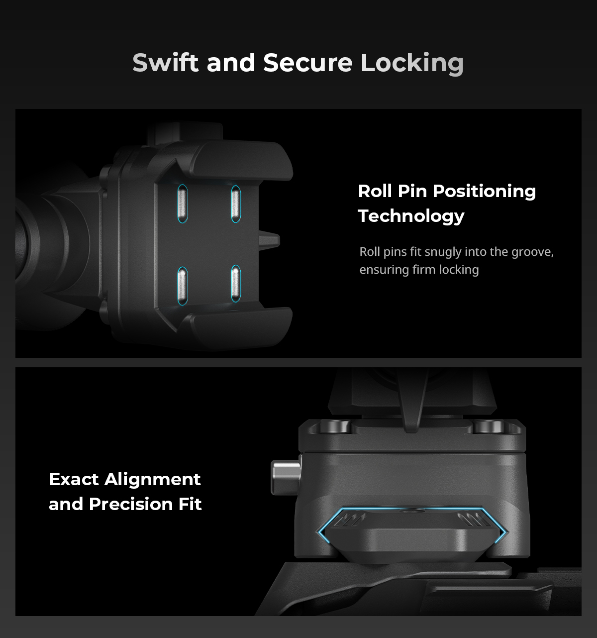1. Exclusive QR-Slide patented structure for NATO clamp with suspended pins that lock the rail after sliding into a groove, making it stable and anti-deflection.