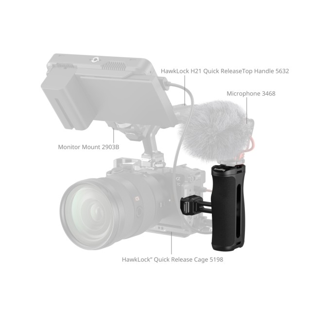 SmallRig "HawkLock" H21 Quick Release Side Handle 5951 is designed to enhance dynamic handheld shooting, delivering smooth movement and seamless control while providing versatile expansion options. Featuring SmallRig's patented "HawkLock" quick release system, the handle self-locks with a single press for rapid and secure mounting and dismounting.