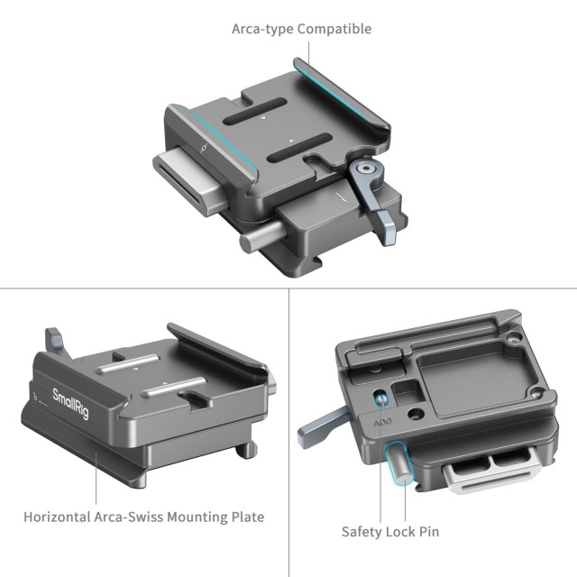 SmallRig HawkLock H38 Arca-Swiss Quick Release Plate for DJI Stabilizers 4639 is specially designed for DJI RS 2 / RSC 2 / RS3 / RS 3 Pro / RS 3 mini / RS 4 / RS 4 Pro stabilizers, facilitating easier camera leveling on stabilizers. This plate allows cameras such as the Sony FX3 with a 24-70mm lens, Canon R5 with a 24-70mm lens, FUJIFILM X-T5 with a 16-55mm lens, and LUMIX GH6 with a 12-60mm lens to be mounted onto the RS 3 mini. The Arca-Swiss quick-release baseplate features an adjustable anti-slip design to prevent accidental detachment and enables efficient switching between tripod and stabilizer setups. Additionally, the Arca-Swiss quick-release plate incorporates an anti-twist design for secure camera mounting.