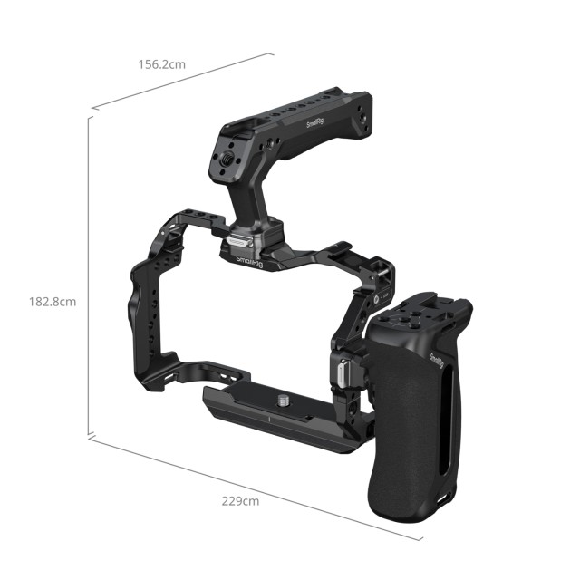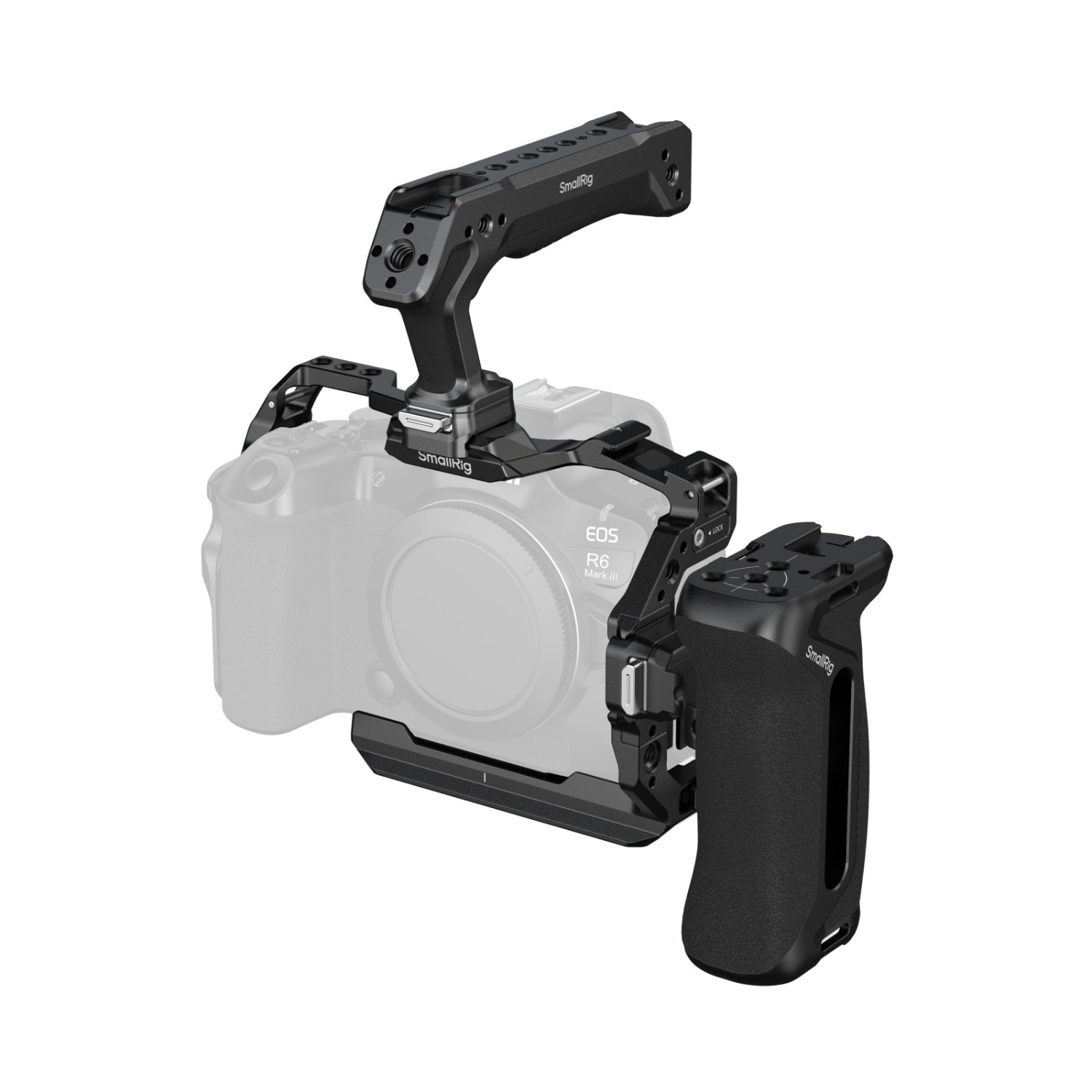 SmallRig "HawkLock" Quick Release Cage Kit for Canon EOS R6 Mark III / R6 Mark II (Advanced Edition) 5958 is expertly crafted to improve handheld shooting experience while offering comprehensive camera protection and versatile mounting options. The kit includes a cage, a USB-C & HDMI cable clamp, a “HawkLock” top handle, and a “HawkLock” side handle.
