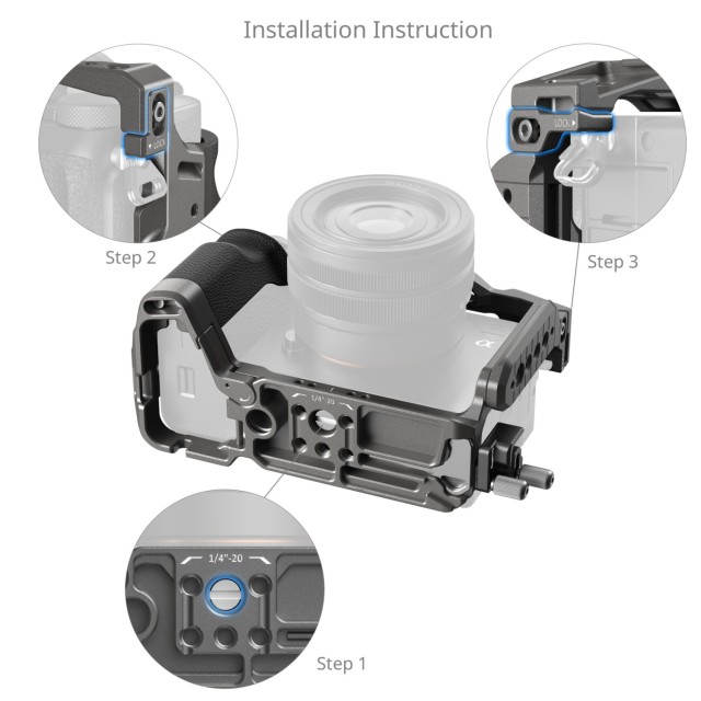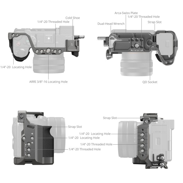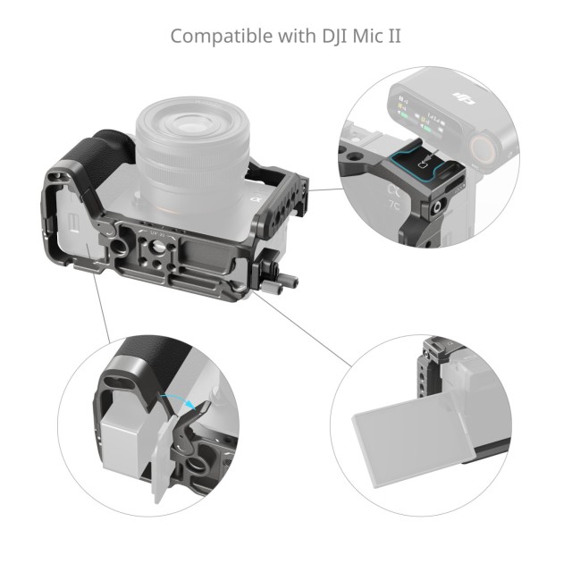 SmallRig “HawkLock” Quick Release Cage Kit with Silicone Handle for Sony Alpha 7C II / 7CR 5198 is designed to provide an optimal shooting experience with comprehensive protection, a comfortable grip, and versatile mounting options for your camera. This kit includes a cage, cable clamp and silicone handle. It boasts SmallRig’s patented “HawkLock” quick release system, which includes a NATO rail and Arca-Swiss quick release plate, allowing for secure and smooth one-click mounting “HawkLock”-compatible accessories, such as top handles (ID 4483), side handles (ID 4485), and quick release mount plates (ID 4486).