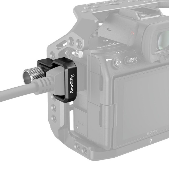 SmallRig HDMI Cable Clamp for A7S III Cage 3000 is compatible with SmallRig Cage 2999. Designed to prevent the camera's HDMI cable from accidentally disconnecting, this clamp attaches to the side of the cage using a 1/4"-20 screw and two anti-twist pins. The easy-to-grasp Knurled 1/4"-20 screw adjusts a sliding block that can be tightened to accommodate HDMI cable of varying diameters. This Cable Clamp is constructed of a sturdy aluminum alloy and comes with an Allen wrench.