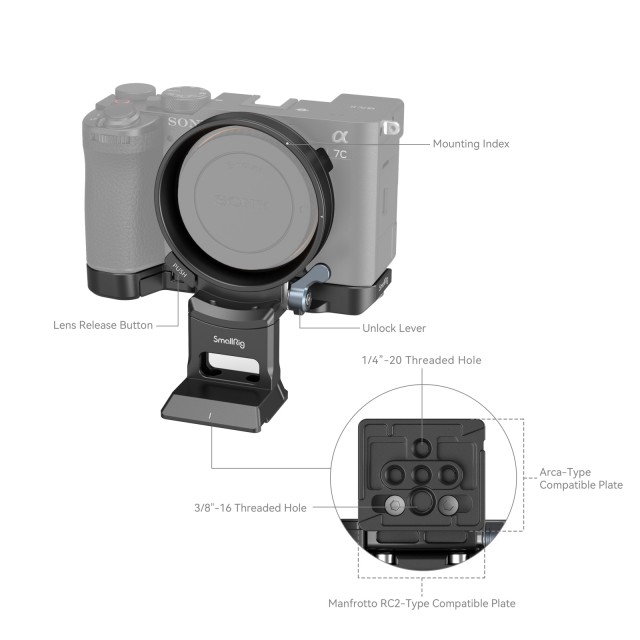 SmallRig Horizontal-to-Vertical Mount Plate Kit for Sony Alpha 7C II / Alpha 7CR 4570 is designed to quickly switch between horizontal and vertical modes without adjusting the lens's optical axis. It locks the bottom of the camera via a 1/4"-20 screw and anti-twist pin and maintains full access to the LCD flip screen and ports and features built-in pads that…