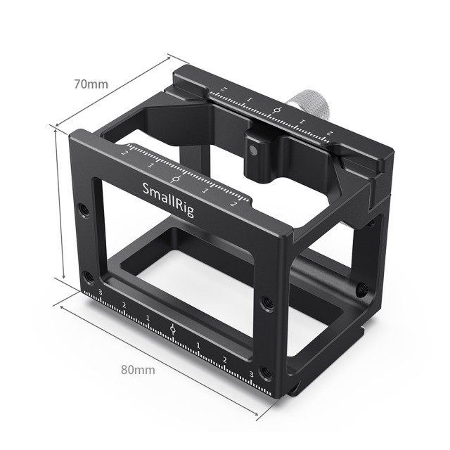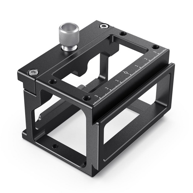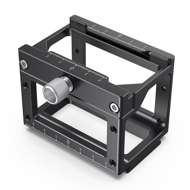 Featuring scale mark on the top and the side makes it easy for position arrangement. It can take in the shutter release controller in the middle so the controller doesn't have to be hung. Besides, there are many M5 threaded holes on the sides, the cables can be arranged with M5 wingnuts, which makes your rig organized and clean.