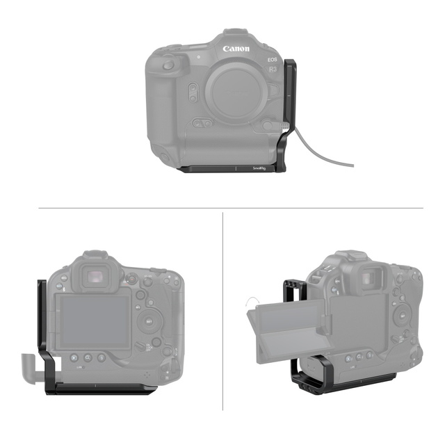 SmallRig L-Bracket for Canon EOS R3 3628 is designed for quick switch between horizontal and vertical shooting. It is locked into the bottom of a camera via a 1/4"-20 screw and an anti-twist screw, fitted with a silicone pad to prevent scratches and deflection, and can be disassembled into an Arca-compatible base plate (used separately) and side plate, both…