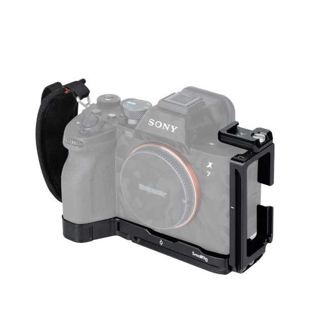 SmallRig L-Bracket Kit for Sony Alpha 7 IV / Alpha 7S III / Alpha 7R IV / Alpha 1 / Alpha 9 II 3856 is designed for enhanced grip feeling and quick switches between stabilizer shooting, horizontal and vertical tripod shooting. It attaches to the bottom of the camera via a 1/4" -20 screw and locating pin, with features a built-in silicone pad to prevent scratches and twisting. There is a spindle spanner at the battery door which fits the camera curve and leaves room for a little finger for a comfortable grip; Embedded select genuine leather in the baseplate integrates into the camera body.