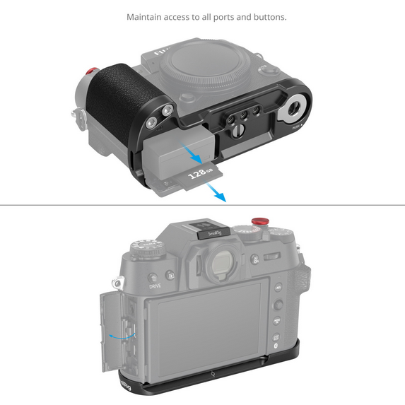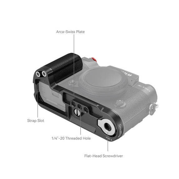 The SmallRig L-Shape Mount Plate with Silicone Handle for FUJIFILM X-T50 (Black) 4783B enhances camera handling with its ergonomic silicone grip, Arca-Swiss quick release plate, and thoughtfully integrated features designed specifically for FUJIFILM users.
