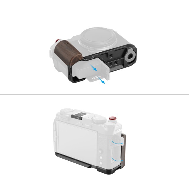 SmallRig L-Shape Mount Plate with Wooden Handle for FUJIFILM X-M5 (Black) 5260 is designed to improve the camera grip. The L-Shape Grip mounts to the camera with a 1/4"-20 screw at the bottom, and the built-in silicone pads prevent scratches.The handgrip is made of natural solid wood, elegant with a rich, natural feel, and designed ergonomically to enhance the grip feeling.The built-in Arca-Swiss quick release baseplate allows for easy and fast Arca-type tripod assembly and disassembly. Four 1/4"-20 threaded holes at the bottom to attach Manfrotto-type plates and tripods. Strap slot for Wrist Strap (ID: 3848). The built-in flat wrench on the bottom for easy accessory assembly and disassembly. Comes with a windshield with built-in cold shoe mount, which reduces wind noise by 15dB. Built-in silicone on the bottom to prevent scratching the hot shoe. The grip comes with the exclusive hot shoe cover imprinted with the “FUJIFILM” sound wave and the year of foundation as our tribute to FUJIFILM. It also comes with a shutter release button to ensure a soft and comfortable finger touch.