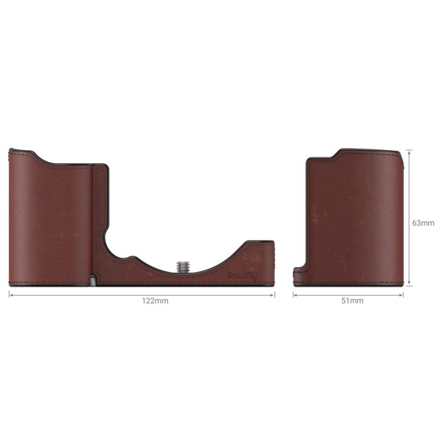 SmallRig Leather Half Case for Sony ZV-E10 3527 is designed to provide protection and a better grip experience. Handcrafted with a genuine top layer leather and microfiber lining, prevent sweat from staining the clothes. The form-fitting case attaches to the bottom of the camera via a 1/4''-20 D-ring screw and does not block the flip screen or other bottoms and ports. Made of lightweight aerospace-grade aluminum alloy, its bottom plate maintains access to the battery replacement and features a 1/4''-20 threaded hole for attachments to a tripod without taking off the half case.