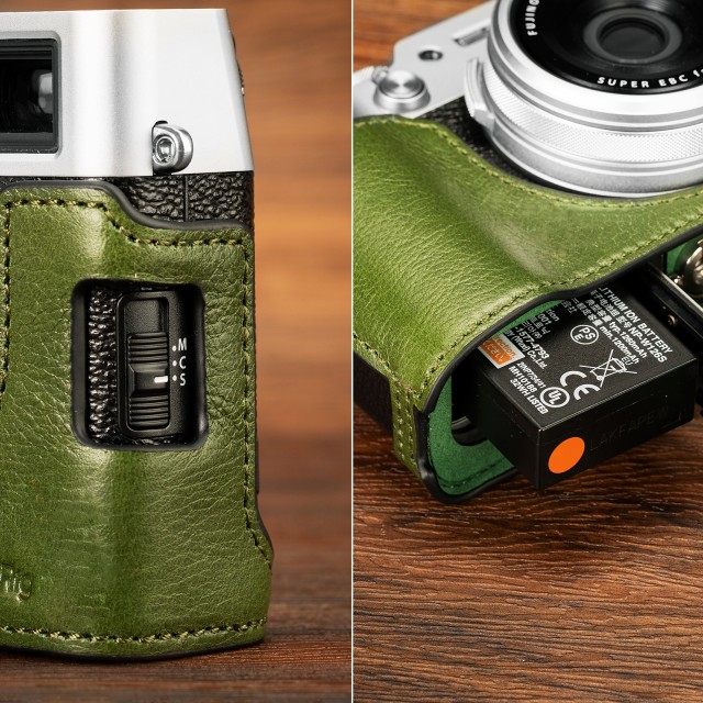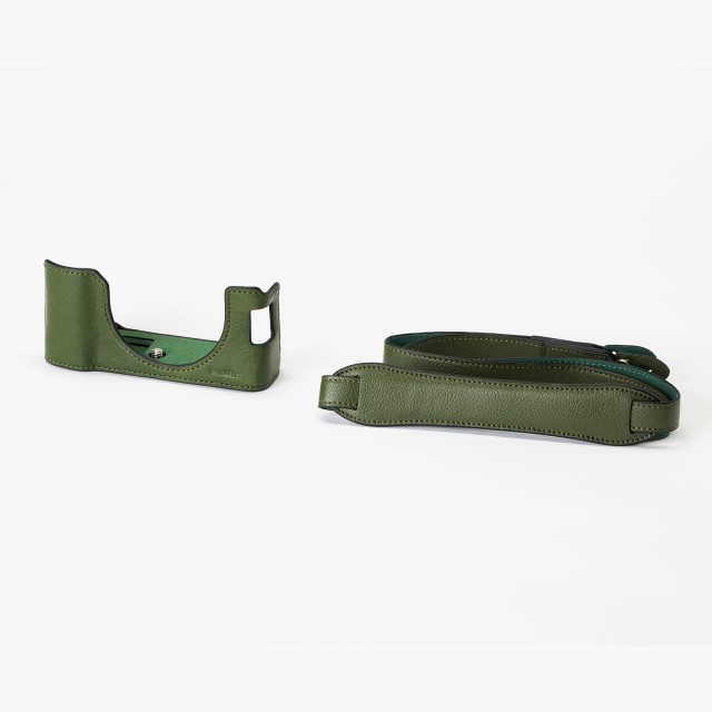 SmallRig Leather Half Case Kit for FUJIFILM X100VI (Green) 4701 is designed to protect the camera while enhancing its vintage charm and quality. The kit includes a leather half-case and a shoulder strap. The durable and breathable top-grain leather material of the half case enriches the camera's retro aesthetics and feel, while its suede lining ensures protection against scratches. With a built-in 1/4”-20 thumb screw at the base, the case attaches directly to the camera without extra tools. The case allows unobstructed access to key camera features like the battery compartment, focus mode, card slot, etc. The integrated aerospace-grade aluminum frame ensures a snug fit and provides impact protection. The bottom features a 1/4”-20 threaded hole, enabling direct tripod mounting without removing the half case. Additionally, a soft and comfortable PU shoulder strap is included for easy carrying.