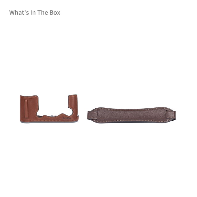 SmallRig Leather Half Case Kit for FUJIFILM X-T50 (Brown) 4710 is designed to protect the camera while enhancing its vintage charm and quality. The kit includes a leather half-case and a shoulder strap. Built-in foam grip for increased finger gripping strength. The durable and breathable top-grain leather material of the half case enriches the camera's retro aesthetics and feel, while its suede lining ensures protection against scratches. With a built-in 1/4”-20 thumb screw at the base, the case attaches directly to the camera without extra tools. The case allows unobstructed access to key camera features like the battery compartment, focus mode, card slot, etc. The integrated aerospace-grade aluminum frame ensures a snug fit and provides impact protection. The bottom features a 1/4”-20 threaded hole, enabling direct tripod mounting without removing the half case. Additionally, a soft and comfortable PU shoulder strap is included for easy carrying.