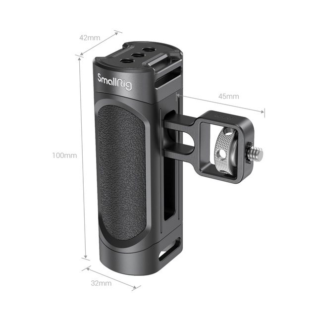 SmallRig Lightweight Side Handle for Smartphone Cage 2772 is designed to fit SmallRig phone cages to improve the comfort of grip for a more lasting and stable phone shooting. It’s compatible with SmallRig Pro mobile cages like 2775, 2776, etc., SmallRig universal cages like CPU2391B, 2791, and so on. The built-in wrench can be used to adjust the height of the handle, and tighten the locking screw as well. It features three standard 1/4-20 threaded holes on the top for accessory attachment. The handle is compatible with SmallRig Hand Strap PAC2456 for a more secure and stable handheld shooting. It is 120g only and comes with anti-slip rubber pads on the surface to ensure a comfortable grip for long time use.