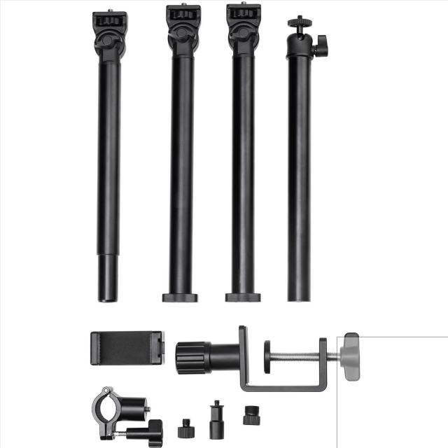 This adaptable bracket facilitates multi-angle shooting with its 360° rotation support, providing a flexible and customizable 3-section articulated arm for convenient mobility. With a robust load-bearing capacity, compatibility with various accessories, and a range of adapters, it's an ideal tool for versatile and efficient shooting setups.