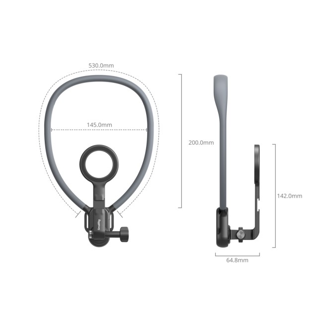 SmallRig MagSafe-Compatible Neck Mount 5127 is expertly designed for POV shooting with mobile phones. It allows for one-touch quick wearing with an unlock button for effortless use. The neckband measures 600mm (23.6in) in total length and boasts a streamlined design for a comfortable fit.