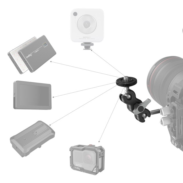 SmallRig Mini Magic Arm with Universal Ball Head 3238 is composed of two 1/4"-20 screw ball heads and a ball head clamp. It can be attached to the top or side of a cage on one end, and to a monitor on the other. Built-in cushions prevent scratching. It is flexible and convenient to adjust the suitable angle. Compact and space-saving, the magic arm suits shooting using lightweight equipment.