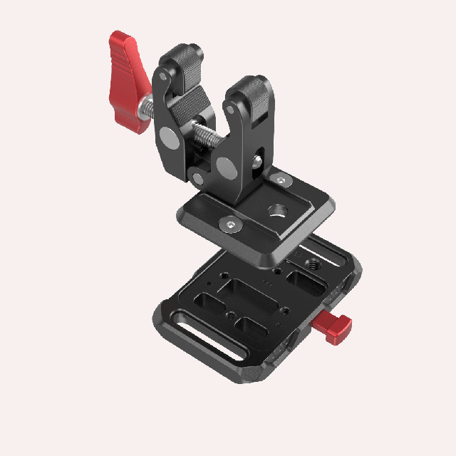 2. It comes with a crab-shaped clamp that fits rod diameter from 15mm to 30mm to help mount a V mount battery to a tripod, a light stand, or a handheld ring for gimbals.