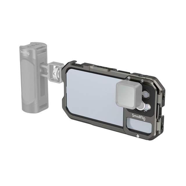 SmallRig Mobile Video Cage 3562 is a multifunctional dedicated cage designed for iPhone 13 Pro for professional videography, live streaming, and vlogging. The compact, formfitting cage weighs only 87g and features 1/4"-20 anti-twist threaded holes and cold shoes that support accessories as Side Handle 2772, Tripod BUT2664, Microphone 3452, and LED Light 3286. Its back lens cover is interchangeable and compatible with M-mount or 17mm threaded lenses for better image quality. The hollow design does not block iPhone’s buttons, ports and allows using radar, ultra-wide-angle lenses, and wireless charging. With a quick-lock design, the cage becomes easier to assemble and disassemble, safer, and more stable, it will not pop up due to accidental touch after being locked. Metal-made full cage, alongside built-in shims, protects smartphone and prevents vibration and scratches. The cage enables horizontal and vertical shooting.