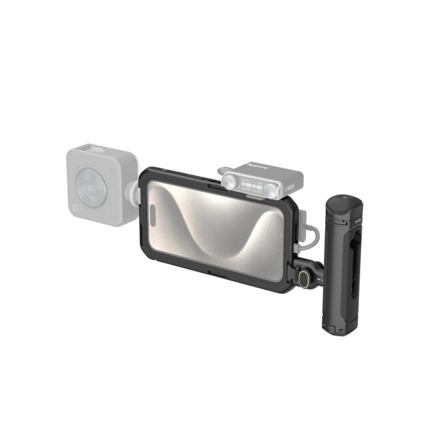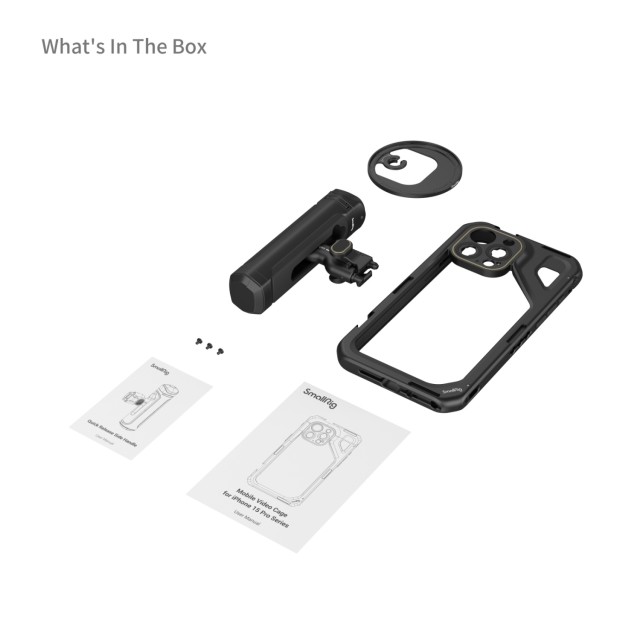 SmallRig Mobile Video Kit (Single Handheld) for iPhone 15 Pro Max 4393B includes one wireless control handle, which allows “one-click” shooting and ensures stable videoing and vlogging. The cage has multiple 1/4"-20 threaded holes and a cold shoe to attach handle, tripod, microphone, LED video light, etc. They all feature new SmallRig Quick Release design for an easy and instant switch between shooting in horizontal and vertical orientations.