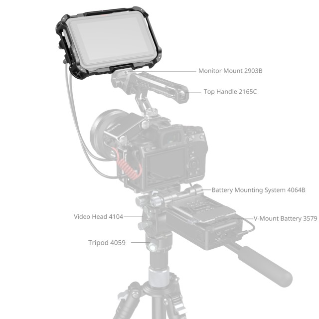 The cage features a built-in "HawkLock" H21 NATO rail, compatible with the "HawkLock" Monitor Support (ID 4888) and the Swivel and Tilt Adjustable Monitor Mount (ID 2906B), enabling quick attachment and detachment. It is equipped with multiple 1/4"-20 threaded holes for attaching accessories such as the Monitor Mount (ID 2903B) and Magic Arm (ID 3873), along with ARRI 3/8"-16 locating holes for mounting the Magic Arm (ID 4900). Strap holes at the top and bottom enable convenient shoulder strap attachment. Engineered for durability and stability, the cage features a two-point locking system that minimizes shake during operation.